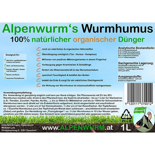 Was als einfache Leidenschaft für Garten und Pflanzen begann, ist heute eine klare Mission: die Kraft der Natur sinnvoll nutzen und nachhaltige Kreisläufe schaffen. Alpenwurm steht für die Überzeugung, dass gesunde Böden, natürliche Prozesse und verantwortungsbewusstes Handeln die Grundlage für eine lebenswerte Zukunft sind. Mit viel Herzblut, Erfahrung und dem Blick für das Wesentliche entwickeln wir Lösungen, die zeigen, wie aus vermeintlichem Abfall wertvolle Ressourcen entstehen – einfach, effektiv und im Einklang mit der Natur.